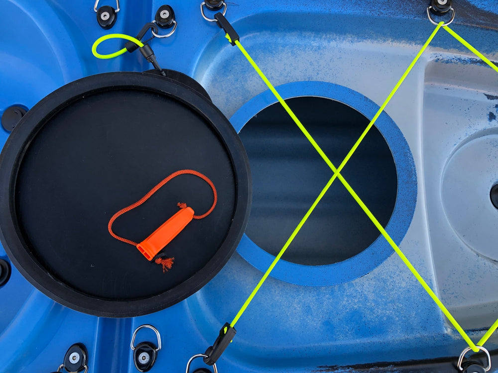 Inoltre il grande spazio a poppa permette di trasportare vari oggetti, zaino, borsa degli attrezzi e del pescato il tutto assicurato al kayak con cinghie lega carico.