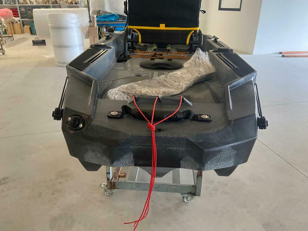 Big mama kayak a pedali triken 330 - canoa monoposto fishing con 4 portacanne, 2 gavoni, timone, sistema di pedali, sedile rialzato, 11 barre di scorrimento ver. scafo rosso