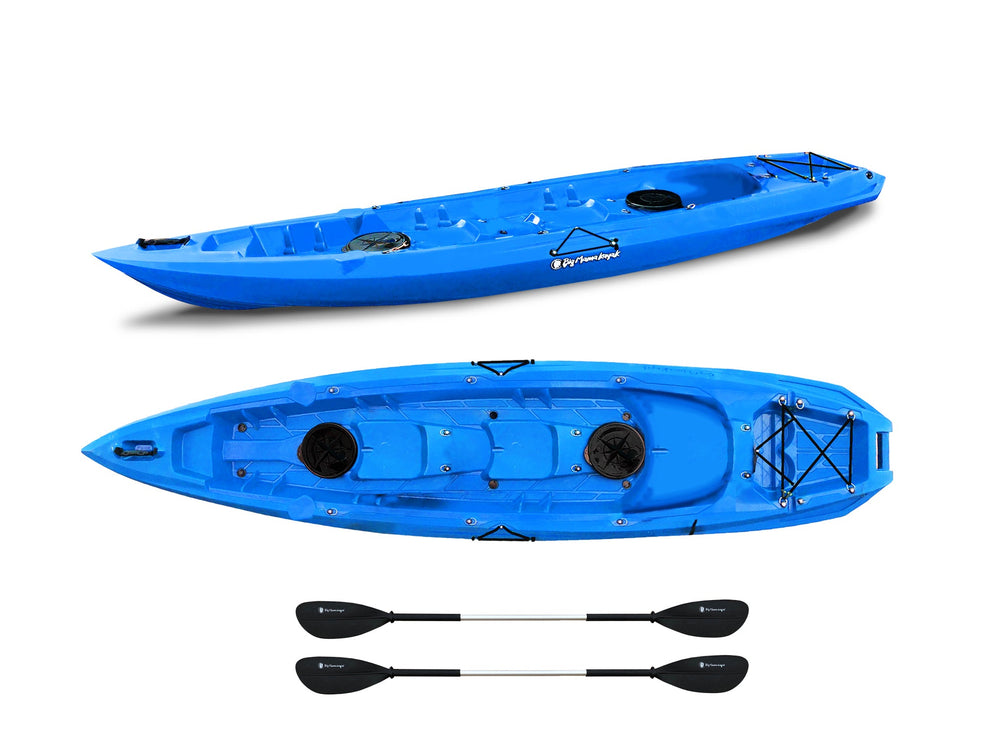 Canoa biposto Mojito Big Mama Kayak - 380 cm - 2 posti adulto + 1 posto + 2 gavoni + 2 ruote integrate + 2 pagaie omaggio - azzurro