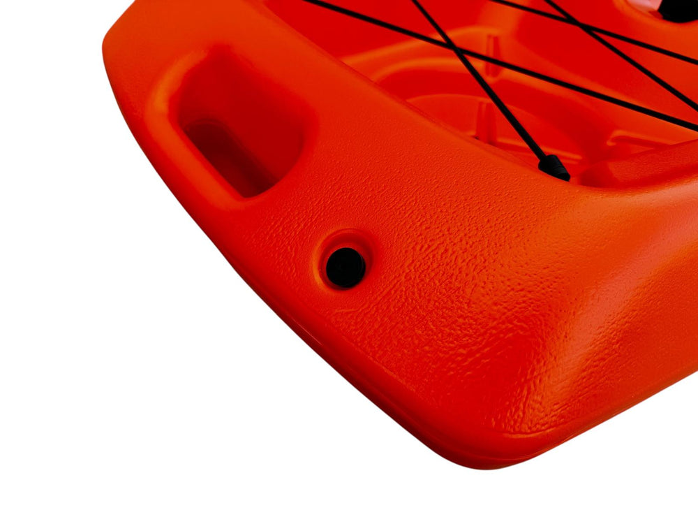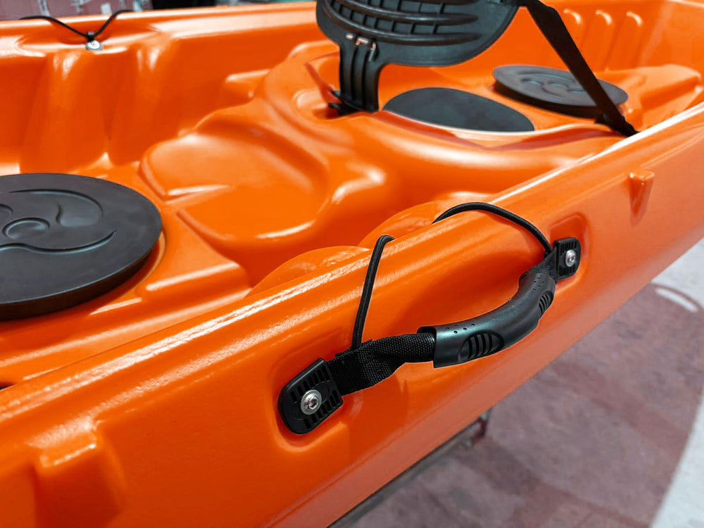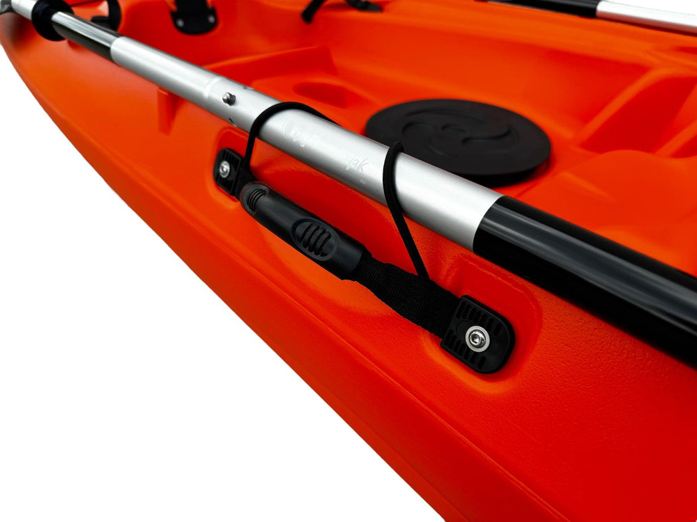 Maniglie rigide anteriore e posteriore + 2 maniglie laterali multifunzione, che fungono anche da porta-pagaie: così puoi lasciare le pagaie fissate mentre fai il bagno in tutta tranquillità