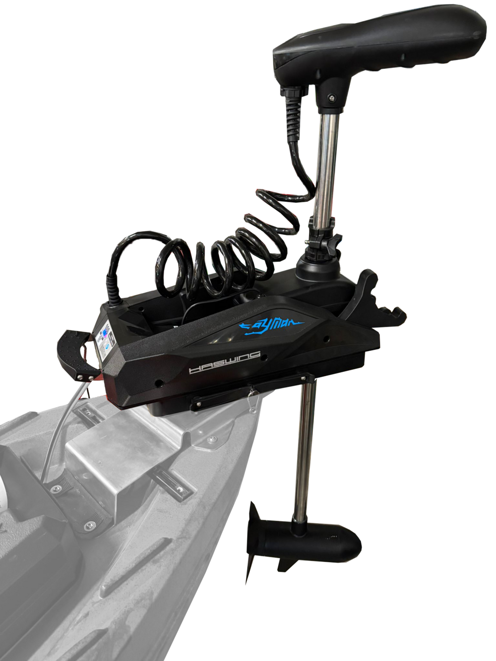 Kayak a Motore di prua Haswing Cayman 55lb con GPS + Pedali divisibile Big Mama Triken 330 live S, con ruote e vasca del vivo