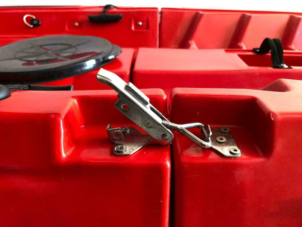 Il sistema di connessione tra i moduli è stato appositamente progettato per evitare sganci accidentali ed è dotato di 4 ganci in acciaio inossidabile per ogni modulo (senza l'uso di plastica). Questo metodo di aggancio permette di trasformare il kayak modulare in un unico pezzo. I test eseguiti con il kayak sospeso dimostrano una connessione perfettamente stabile.
