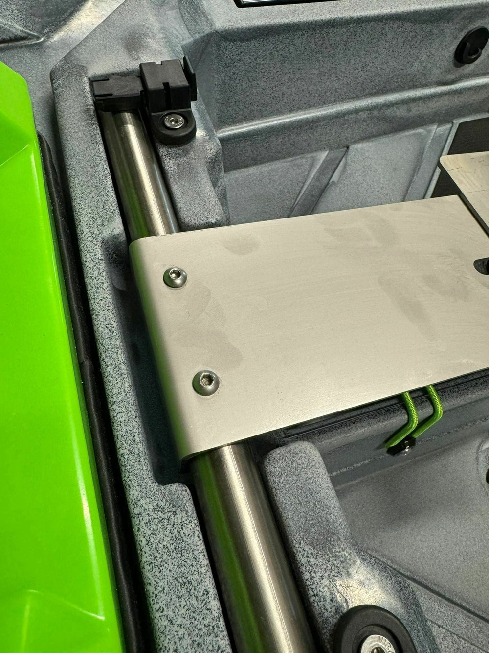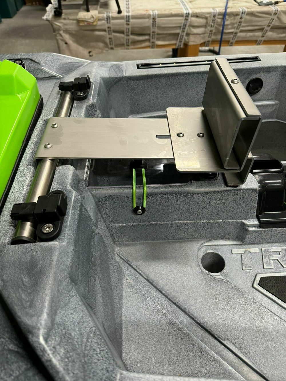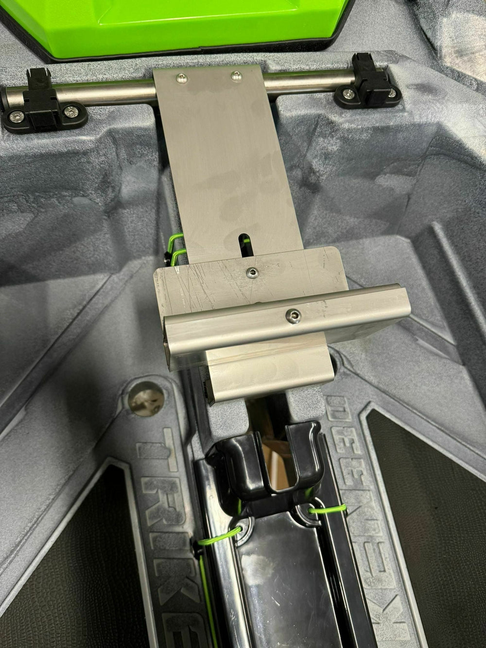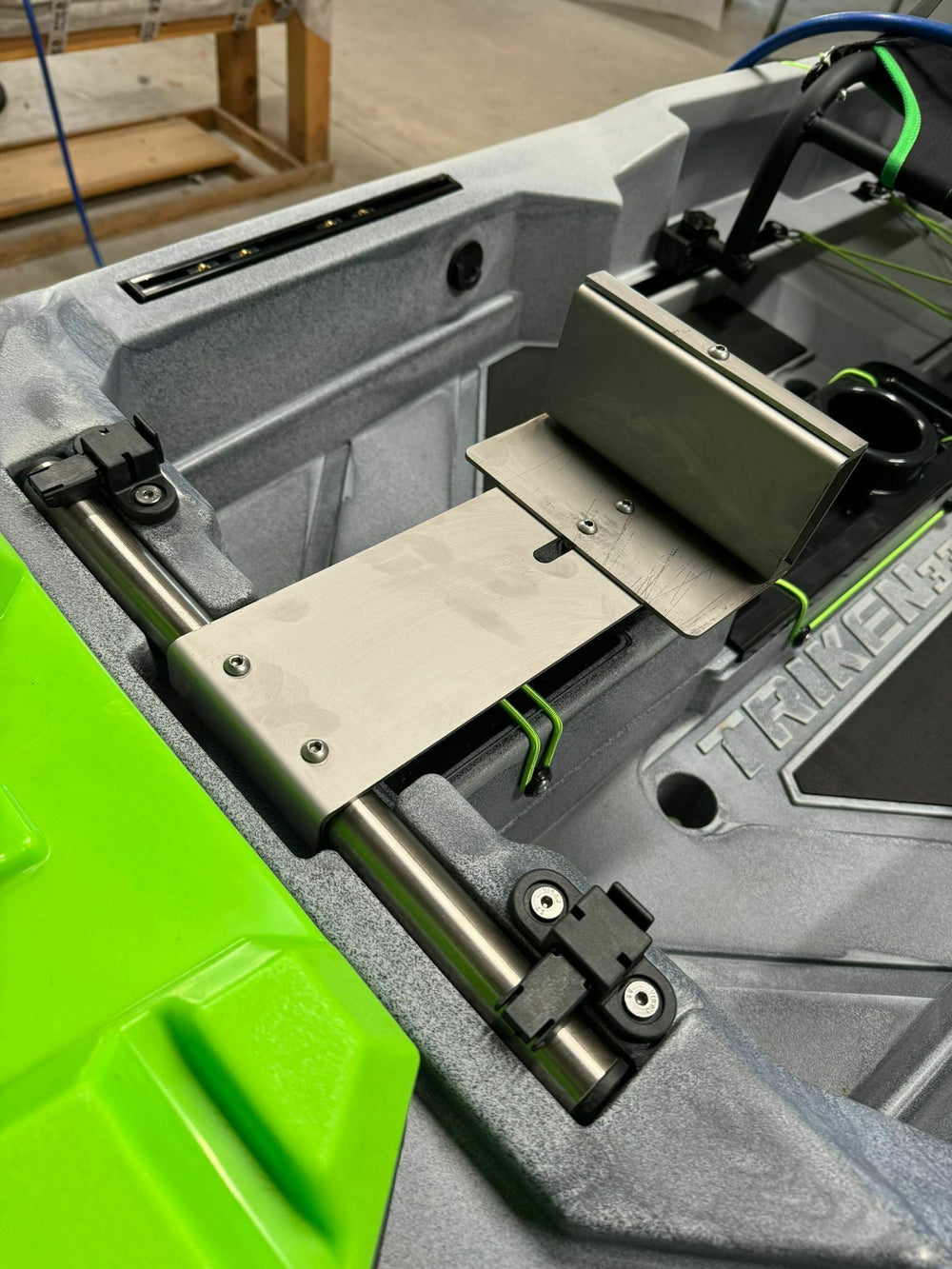 Supporto motore realizzato interamente in acciaio inox con taglio laser, adatto al montaggio di un motore elettrico in posizione centrale per Triken 405 e Triken 330 e Triken 380