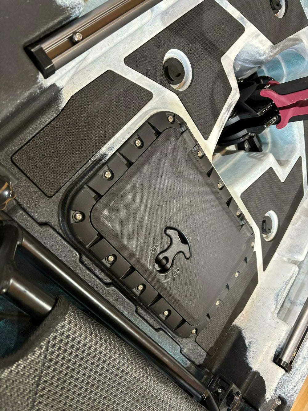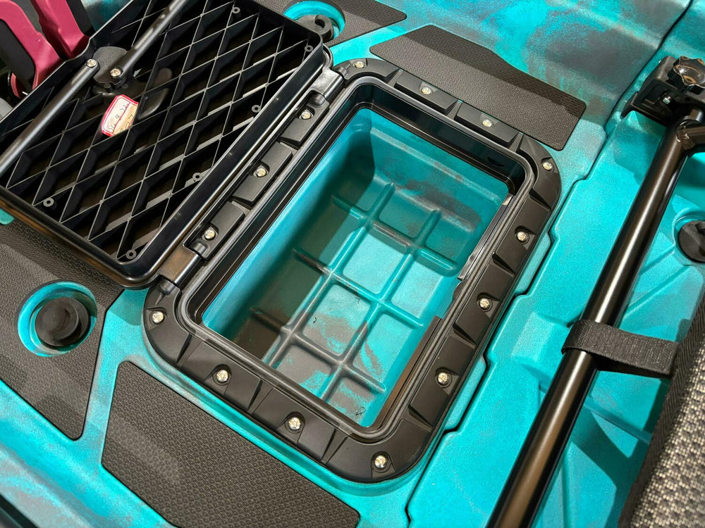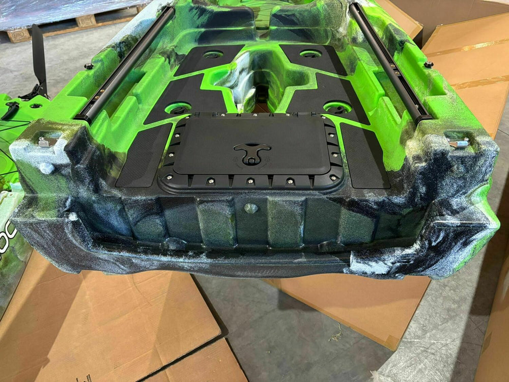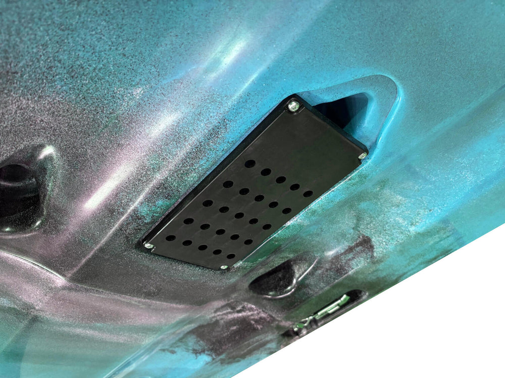 - Vano per sonda ecoscandaglio incluso, cosi da poter installare il trasduttore all'interno del kayak, protetto da una copertura.