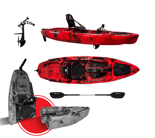 Kayak Fishing a pedali Triken 330 S Kayak divisibile + pedaliera + pedali + gavone + vano batteria + vano sonda eco